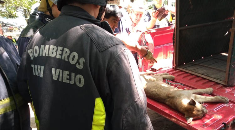 Asimismo, Carrillo añadió que “debido a la altura en la que se encontraba el felino, necesitábamos la colaboración de la Municipalidad de Tafí Viejo, que envió una camioneta con una escalera hidráulica para que el técnico especializado César Acosta, le colocara  el tranquilizante. Finalmente los bomberos rescataron al animal en una red para evitar que se lastime”.