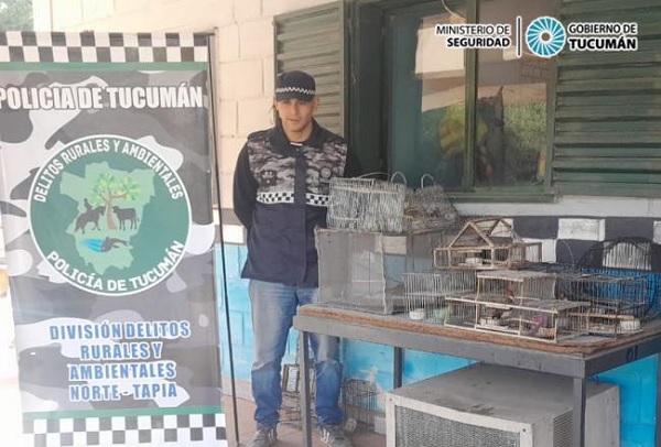 Tras tareas investigativas, efectivos de la División Delitos Rurales y Ambientales N°4 Norte Tapia, constataron la existencia de una importante cantidad de aves autóctonas en una vivienda ubicada en Tafí Viejo.
