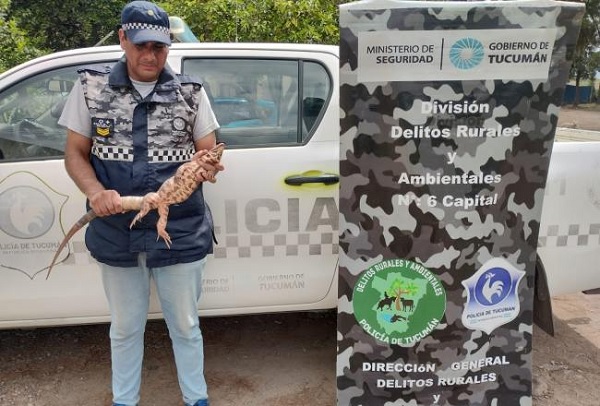 Un equipo de la División Delitos Rurales y Ambientales Capital N° 6 rescató una iguana que fue hallada por vecinos del Barrio Sivanto, en la ciudad de Tafí Viejo.