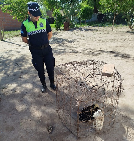 Un equipo policial de la División Delitos Rurales Graneros se dirigió al lugar para tomar carta en el asunto. La mujer que lo encontró dentro del patio de su casa, lo puso en una jaula con alambre en resguardo hasta que pudieran brindarle ayuda. Los uniformados entonces trasladaron al animal.