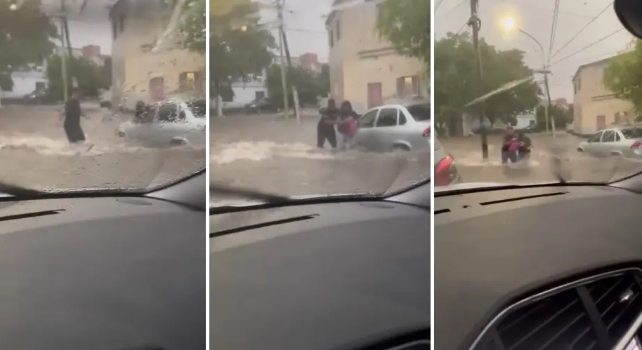 El hecho se viralizó en la red social Twitter. El video capta el momento en el que un hombre ayuda a una mujer a salir por la ventanilla de su automóvil en el mismo momento en que la correntada hacía poner en riesgo su seguridad a bordo del coche. El hecho ocurrió en la esquina de Rivadavia y Bolivia.