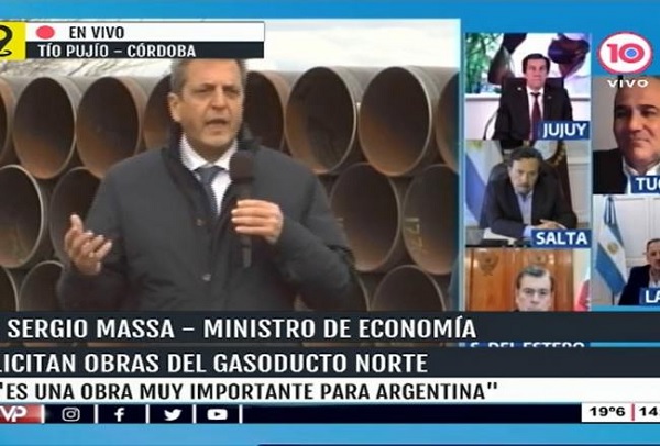 El ministro de Economía y candidato a presidente por Unión por la Patria, Sergio Massa, lanzó la licitación para la obra de reversión del Gasoducto Norte, con la cual buscará dar continuidad a la política de infraestructura energética destinada a potenciar la capacidad de producción de Vaca Muerta.