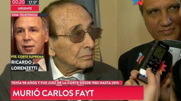 El presidente de la Corte Suprema, Ricardo Lorenzetti, recordó esta madrugada a su ex colega del máximo tribunal, Carlos Fayt, a quien definió como “un ejemplo para los jueces del país”.