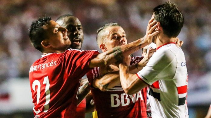 El primer tiempo mostró nuevamente a un River deslucido en el juego, más similar a la versión que se viene viendo en el certamen doméstico que el que se destacó en la Copa. San Pablo, obligado a ir por el triunfo, por ser local y para acercarse a la clasificación, fue algo más, aún sin ser demasiado profundo en sus incursiones en ataque.