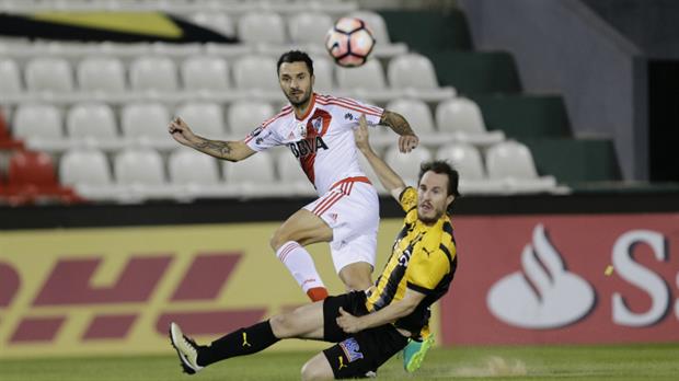 Con goles de Ignacio Scocco de tiro libre y de Marcelo Larrondo, de cabeza, River Plte venció de visitante a Guaraní de Paraguay, en el encuentro de ida de los octavos de final de la Copa Libertadores de América.