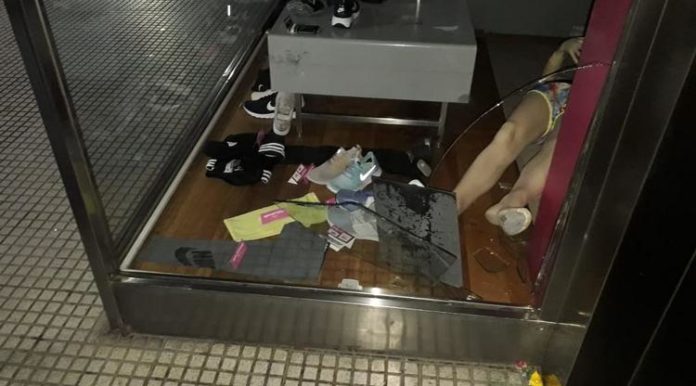 Personal de Guardia Urbana aprehendió a un hombre que había roto una vidriera en la zona céntrica y estaba sustrayendo elementos del interior de un comercio de indumentaria deportiva.