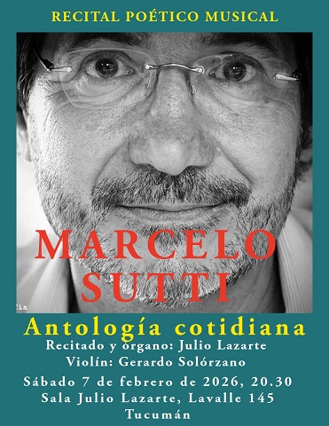 - “Antología cotidiana”, de Marcelo Sutti. Sala Lazarte, Lavalle 145, a las 20.30. Recitado y órgano: Maestro Julio Lazarte. Violín: Gerardo Solórzano.