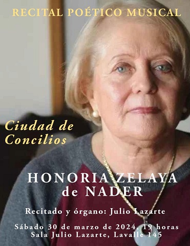 • Sábado 30 de marzo, Honoria Zelaya de Nader, “Ciudad de Concilios”.