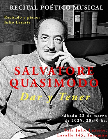 - “Dar y tener”, de Salvatore Quasimodo. Recitado y piano: Maestro Julio Lazarte.
