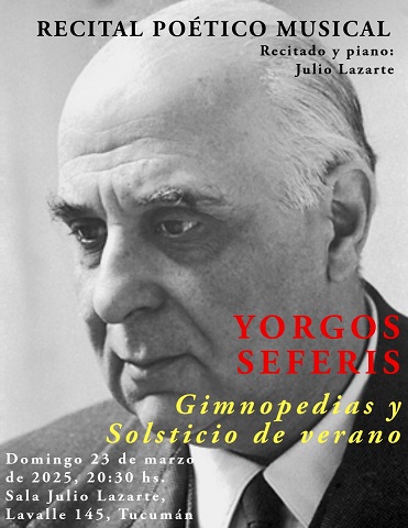 - “Gimnopedias y Solsticio de verano”, de Yorgos Seferis. Recitado y piano: Maestro Julio Lazarte.