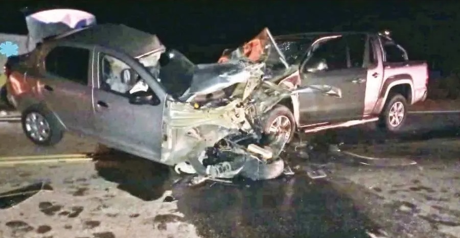 Por causas que se tratan de establecer, una camioneta Volkswagen Amarok chocó de frente con un automóvil Renault Logan. Los ocupantes del vehículo menor fallecieron en el acto a causa de las graves lesiones que sufrieron.