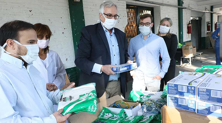 Estuvieron presentes en representación del ministerio de Salud Pública, el subsecretario de Estado,  Gustavo Vigliocco y la jefa de la División Odontología del Programa Integrado de Salud, Susana Blunda. La entrega consta de 10 palets de botellas de 500 cc de agua; 2000 anteojos; 20 cajas de 100 guantes cada una; 50 mamelucos y 1020 botellas de alcohol al 70 % que donó la institución al Ministerio de Salud Pública.
