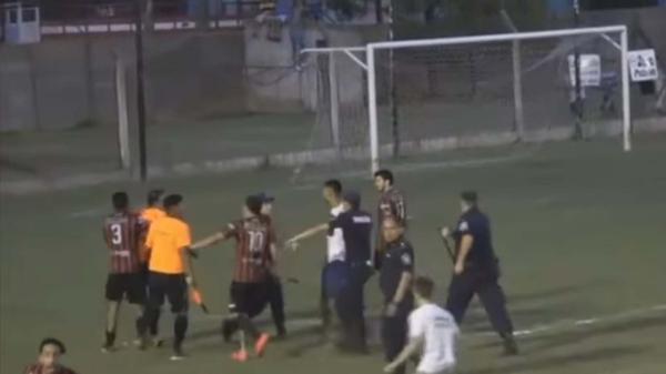 El árbitro agredido fue Claudio Elichiri, de la liga de Azul, a quien jugadores de Sarmiento le endilgaron no cobrar un penal a su favor contra el futbolista Alexis Morales.