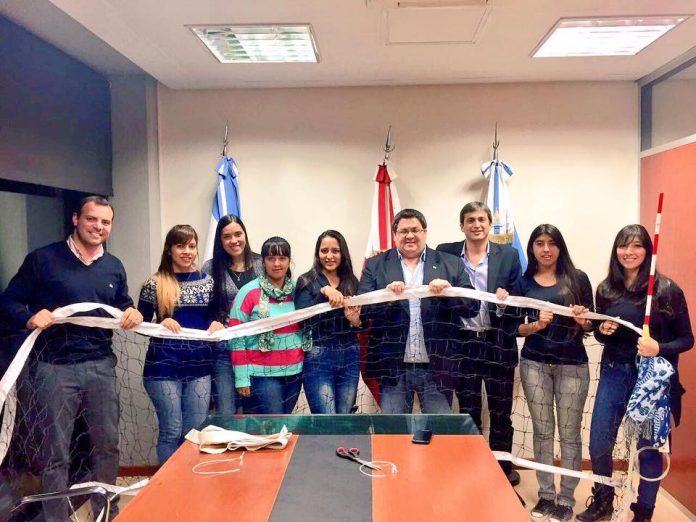El legislador radical Ariel García, quien preside la Comisión de Deportes de la Legislatura, entregó material deportivo a jóvenes que practican vóley en Concepción.