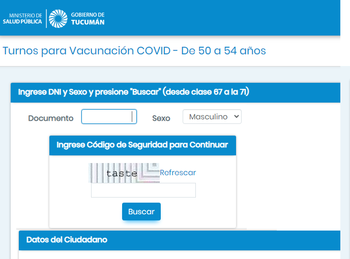El Gobierno de Tucumán, a través del Sistema Provincial de Salud (SIPROSA) abrió la inscripción para vacunar a personas entre 50 y 54 años en el Gran San Miguel de Tucumán (Capital, Yerba Buena, Tafí Viejo, Las Talitas, Alderetes y Banda del Río Salí). Los integrantes de este grupo son clases 1967 hasta 1971.