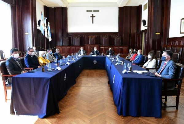 Por su parte, el presidente de la Corte Suprema de Justicia de la Provincia, Daniel Leiva, sostuvo: “En esta reunión, que fue de neto corte institucional, dimos cumplimiento a una carga legal dispuesta en la Ley Provincial 9.188 que dispone de la creación de una Comisión Interpoderes con una conformación donde cada uno de los poderes aporta a sus representantes. Formalizamos y dejamos constituida esa comisión”.