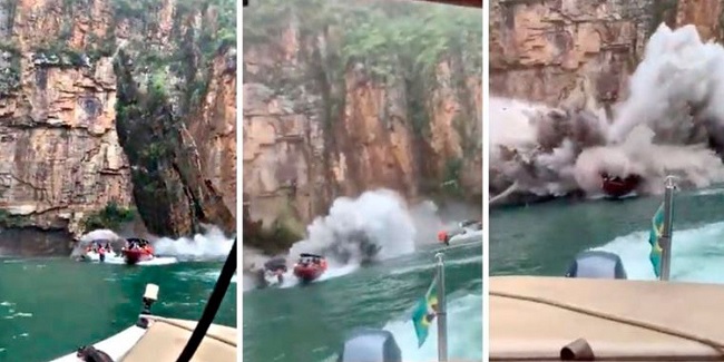 Un acantilado se desprendió y cayó sobre tres lanchas que transportaba un grupo de turistas que circulaban en el Lago de Furnas, en Capitólio, Minas Gerais de Brasil. Las imágenes que circularon por redes sociales muesta el impactante momento que provocó seis muertos, 32 heridos y 20 desaparecidos, según medios locales.