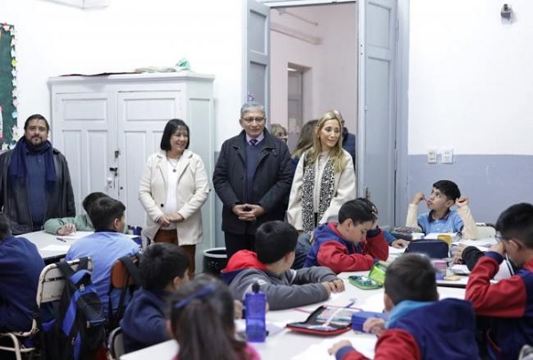 La secretaria de Educación, Gabriela Gallardo; junto al director de Educación Primaria, Carlos Díaz, acompañaro a la comunidad educativa de la Escuela Federico Helguera.
