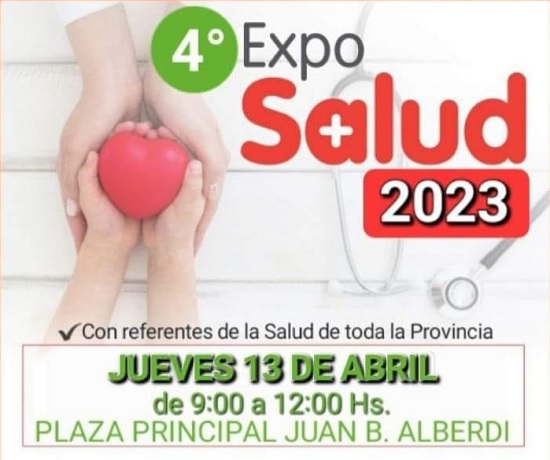 La Municipalidad de Alberdi a través del Área de Salud Pública invita al público en general a la Expo Salud 2023 que se llevará a cabo este jueves 13 de abril en plaza principal de Alberdi de 9:00 a 12:00 hs.