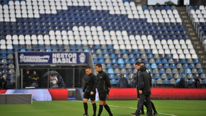 El juez del partido, con sus asistentes, recorrió el campo de juego en tres oportunidades y aunque en las dos primeras dijo que el campo de juego estaba en muy buenas condiciones, tras reunirse con los capitanes volvió a hacer una recorrida y decidió la suspensión.