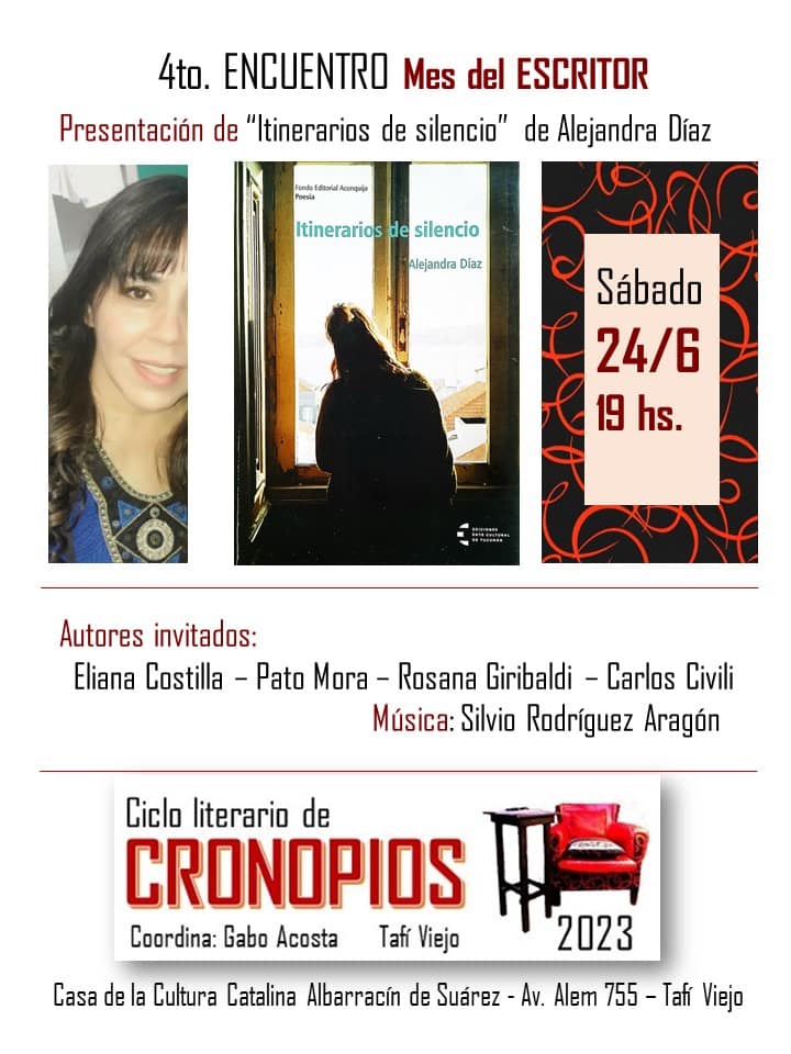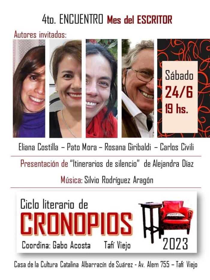 El ya tradicional Ciclo Literario de Cronopios, que se lleva a cabo en la Casa de la Cultura Catalina Albarracín de Suárez, en la ciudad de Tafí Viejo, tendrá su 4º Encuentro de 2023, como parte del Mes del Escritor.