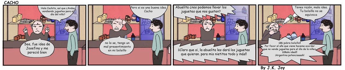 Actualidad Se viene el día de la niñez y el bolsillo de Cacho lo sabe 6 agosto, 2025 Compartir en Facebook Compartir en Twitter 🔊 Escuchar la entrada El personaje principal de la tira cómica de Diario Cuarto Poder , Cacho, Creado por J.K. Joy , se preocupa porque tuvo una mala idea de negocio, llevado por la ocurrencia de Josefina Comments Comentarios