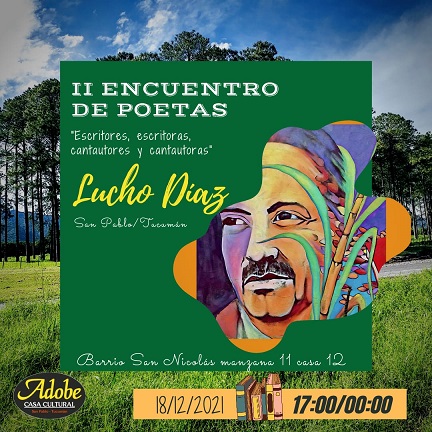 Adobe Casa de Cultura y Biblioteca Popular “Lucho Díaz” organizan el II Encuentro de Poetas “Lucho Díaz”, que este año tendrá modalidad presencial, según informó Guadalupe Albornoz, con el cumplimiento de todos los protocolos sanitarios.