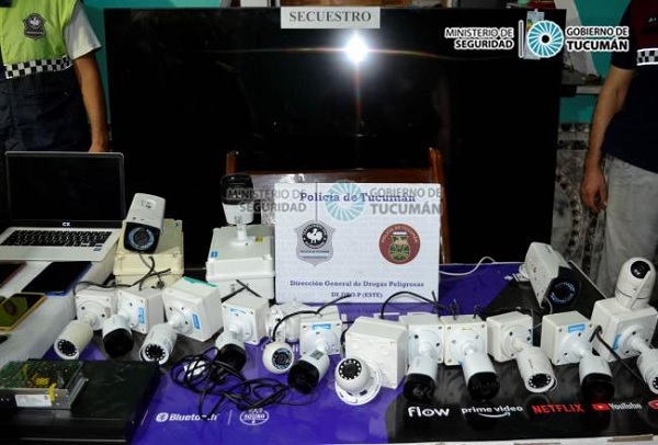 Asimismo, los efectivos procedieron al secuestro de 16 cámaras de seguridad, perteneciente a un circuito cerrado, que tenían para la vigilancia en uno de los inmuebles. En las viviendas requisadas también se hallaron una netbook, una videograbadora y una tablet, entre otros aparatos electrónicos que fueron incautados por los uniformados para su posterior análisis.