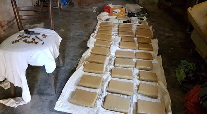 Personal de la Comisaria de Aguilares logró secuestrar en Colonia Tres, Santa Ana, 25 kilogramo de marihuana, un kilogramo de cocaína, un arma de fuego, proyectiles, balanza de pesaje y celulares.