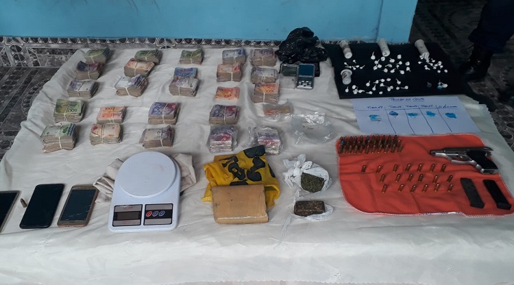 “El personal de la Comisaria de Aguilares comenzó la investigación a través de un video que se viralizó en las redes sociales, donde un prófugo de la justicia amenazaba a los vecinos con armas de fuego. A partir de allí se pidió la autorización de ocho allanamientos, en diferentes donde domicilios de la ciudad de Aguilares, donde encontramos una gran cantidad de sustancias prohibidas: más 45 gramos de cocaína; 595,5 gramos de picadura de marihuana;,9 plantines de marihuana; tres balanzas de precisión y $550.200 en efectivo. También se secuestraron 9 celulares dos armas de fuego, cargadores y cartuchos”, detalló el Jefe de la Comisaria de Aguilares, Miguel Martínez; supervisado por el Jefe de la Regional Comisario, Jorge Diaz.