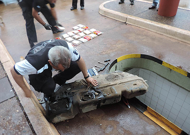 El procedimiento ocurrió en el Puente Internacional San Roque González de Santa Cruz, que une Argentina con Paraguay, cuando personal de la Aduana detuvo a un Ford Taunus que estaba por ingresar al país. Luego del primer control de rutina, se trasladó el vehículo al sector de dársenas para una revisión más exhaustiva. Allí, y tras notar algunas anomalías en el guardabarros, se resolvió someterlo a un escaneo total.
