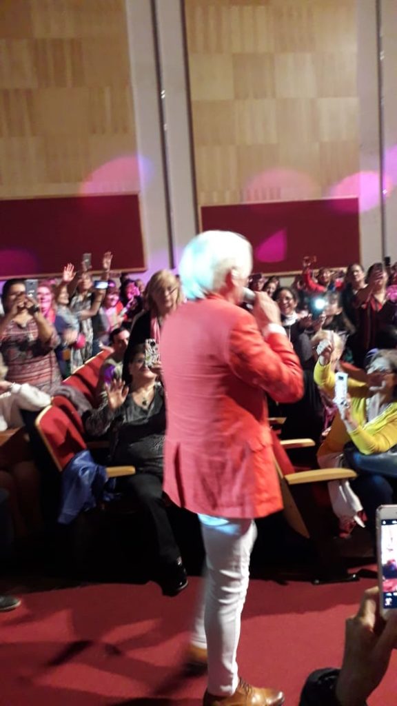 “Te llamo para despedirme”, era el tema que cantaba el artista de 69 años mientras se caminaba entre los fanáticos. Cuando volvió a subió al escenario, pisó mal y cayó a la fosa de la orquesta.