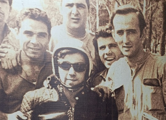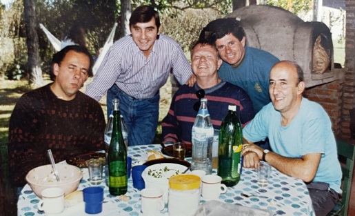 “Lito” Mohamed sentado en la moto. Alrededor la barra brava: “El cabezón” Chechi, “Yiyo” Gallo, “Tin” Noguera y Huguito "El Terrible" Pérez. Yo estaba ausente cumpliendo con la Patria en el Servicio Militar en Villa Reynolds, San Luis.
