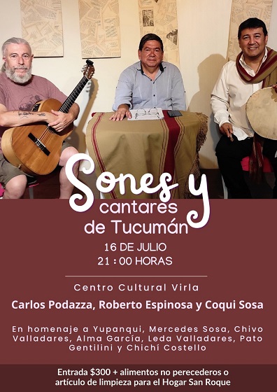 Espectáculos / Letras de Fuego / Noticias. El próximo domingo 16 de julio, se presentará el espectáculo en homenaje a folcloristas denominados “Sones y cantares de Tucumán”, con el escritor Roberto Espinosa, y los músicos Carlos Podazza y Coqui Sosa.