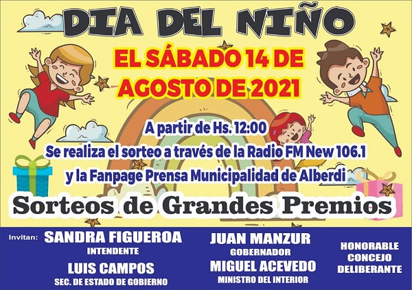 El sorteo se llevará a cabo el sábado 14 de agosto a partir de las 12 hs por FM New 106.1 Mhz, organizado por la Municipalidad de Alberdi.