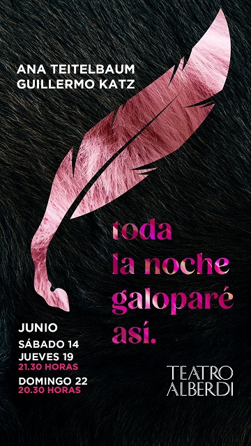 Espectáculos / Noticias. Este sábado 14 de junio, a las 21.30, subirá a escena en el Teatro Alberdi, en la primera de tres presentaciones programadas para junio, la obra de danza “Toda la noche galoparé así”, creación de Ana Teitelbaum y Guillermo Katz.