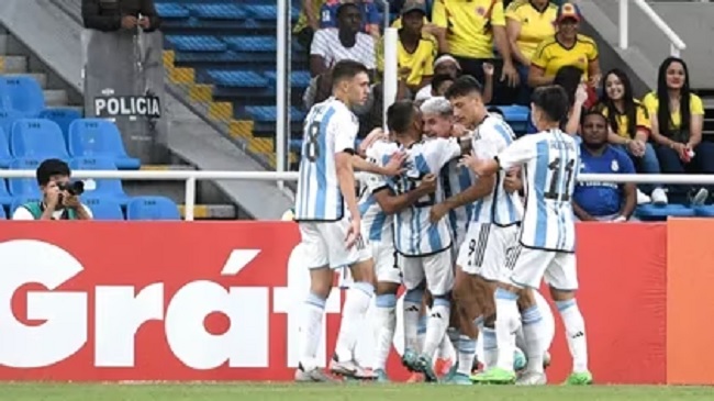 Argentina venció este miércoles por 1 a 0 a Perú en un partido por la fecha 4 del grupo A del torneo CONMEBOL – Sub 20 Colombia 2023. El local hizo el único gol del partido a los 40 minutos del primer tiempo, por medio de Gino Infantino. Después de recibir el balón, el volante aprovechó la ocasión para convertir de cabeza.