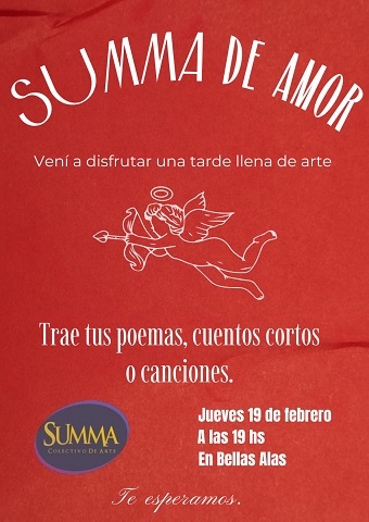 Letras de Fuego / Noticias. La poesía, la narrativa y la música forman parte de la convocatoria denominada “SUMMA de amor”, organizada por SUMMA Colectivo de Arte para este jueves 19 de febrero, a las 19, en bar Bellas Alas.