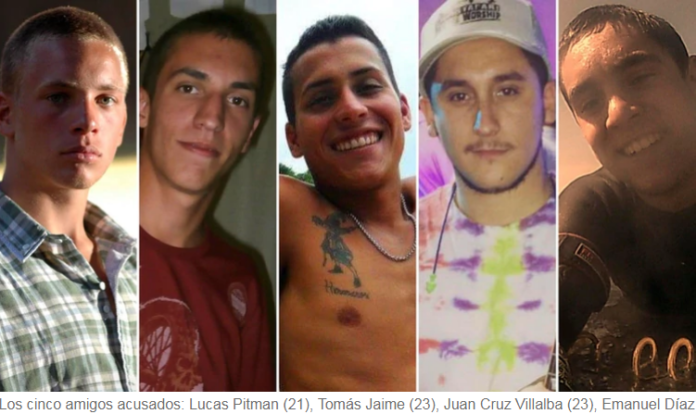 Los acusados son Lucas Leonel Pitman (21), Tomás Agustín Jaime (23), Juan Cruz Villalba (23), Mariano Manuel Díaz (23) y Roberto Fabián Costa (21), al igual que la víctima y su familia, todos oriundos de la ciudad de Mar del Plata.