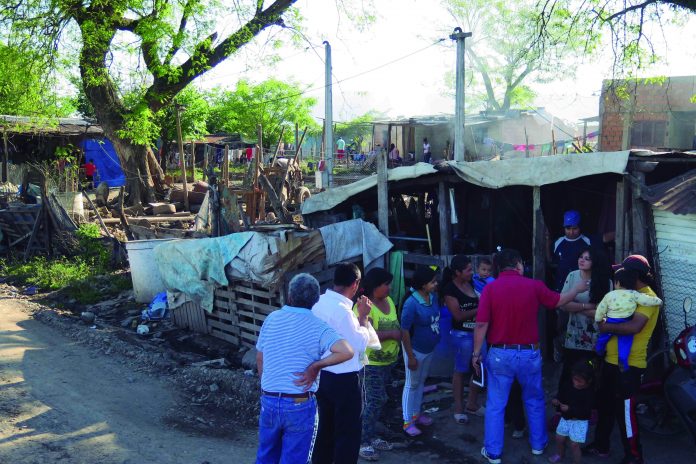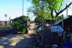 Las casuchas desvencijadas, sostenidas por parantes irregulares, calzadas para que no se caigan, cubiertas en parte con plástico para evitar que todo se moje cuando llueve. Esa es la realidad que pasa la mayoría de los habitantes de estas franjas de caseríos que se encuentran a ambos lados de las vías del tren. “Cada vez que pasa el tren, nos fijamos que los chicos estén con nosotros”, sostiene una mujer joven, de las tantas que habitan el lugar. El tren no sabe de horarios, la trocha es angosta y las máquinas arrastran vagones cargueros, según explican los vecinos presentes, la mayoría son mujeres, que son quienes toman la palabra para explicar su angustiante situación.