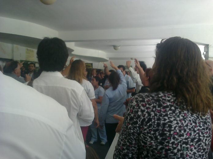 Los trabajadores agrupados en el Sindicato de Trabajadores Autoconvocados de la Salud (Sitas) durante la asamblea interhospitalaria llevada a cabo este mediodía en el hall central del Hospital del Niño Jesús, finalmente aceptaron la última propuesta salarial otorgada por el Gobierno provincial para el sector de la Salud, con lo que se levantaron todas las medidas de fuerzas y se festejó el logro alcanzado.