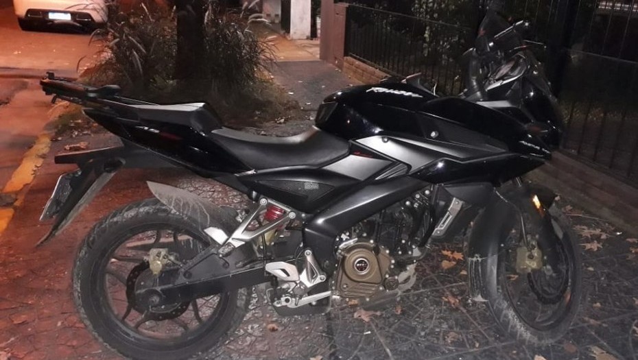 El cómplice dejó abandonada en el lugar la moto Rouser negra 200 centímetros cúbicos, que había sido robada el día anterior en Martínez, y escapó corriendo con la cartera de la mujer.