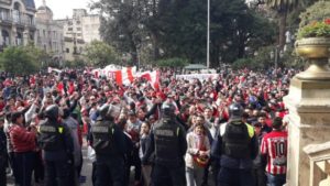 Parte de la multitud que ayer se congregó en Plaza Independencia para celebrar el logro, regresó a las inmediaciones para recibir a aquellos que volvieron a la elite del fútbol nacional y volverán a protagonizar un clásico con Atlético Tucumán en la máxima categoría.