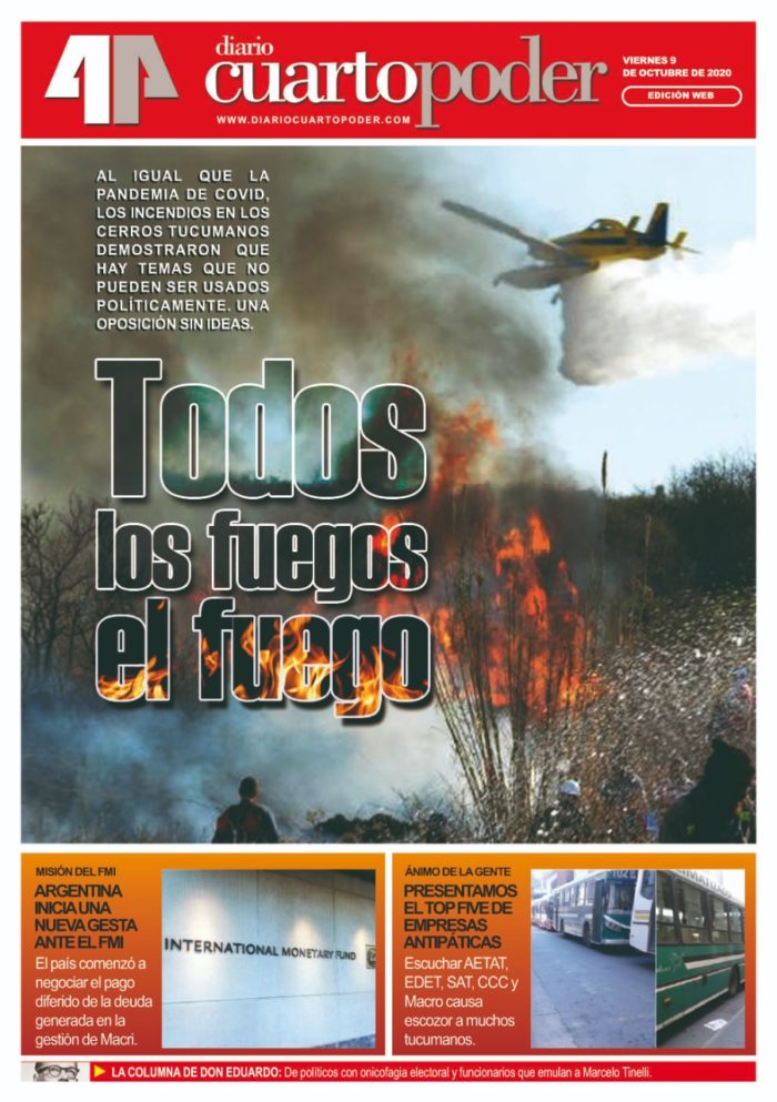 Además, la Nación envió un avión hidrante para combatir los incendios en la zona de Escaba y que estableció su centro de operaciones en territorio de Catamarca. O sea que no sólo se combatieron las llamas en la zona montañosa de la “Ciudad Jardín”.