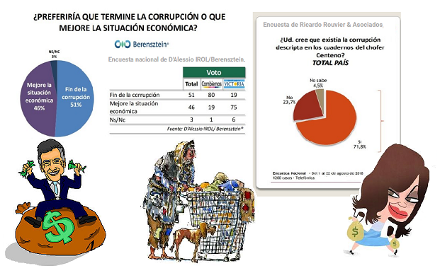 Eso quedó muy evidenciado en encuestas realizadas por consultoras especializadas que pusieron en relieve los dos temas principales que hoy dividen a los argentinos: la corrupción y la economía.