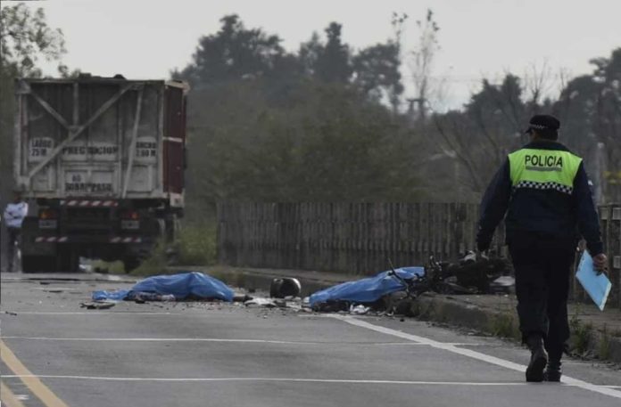 Una pareja que viajaba en motocicleta murió esta mañana al caer bajo una rastra cañera, sobre el puente del río Seco, en la vieja traza de la ruta 38. Según las primeras hipótesis de los investigadores, las moto de las víctimas habría perdido el equilibrio al rozar un colectivo de la empresa Exprebus y fue a parar boja el acoplado.