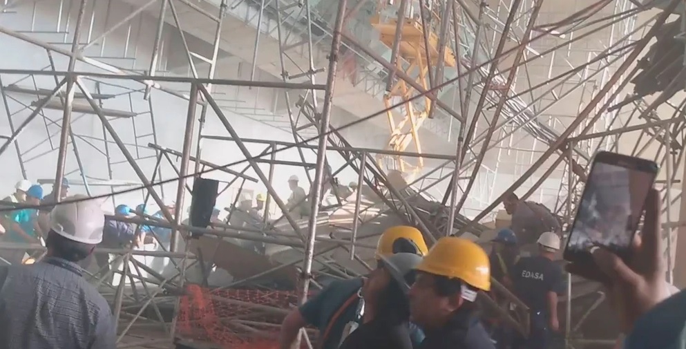“Son estructuras tubulares que sirven para hacer trabajos en altura y por piso. La máquina no es nuestra, no sabemos a quién pertenece. La gente que está ahí, que es personal nuestro, dice que la máquina chocó nuestra estructura y la hizo colapsar. No sabemos cuántas personas trabajaban en el lugar”, indicó Silva.