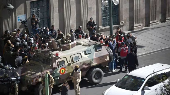 Un grupo de militares de Bolivia y varios vehículos blindados comenzaron a retirarse esta noche de los alrededores del palacio presidencial en La Paz, después de que el presidente Luis Arce tomara juramento a nuevos líderes militares, en el marco de un intento de golpe de Estado.
