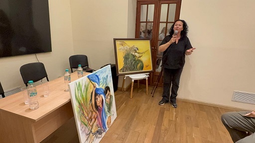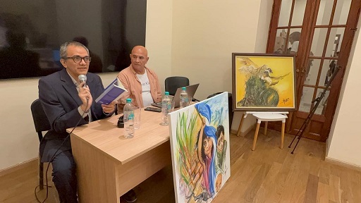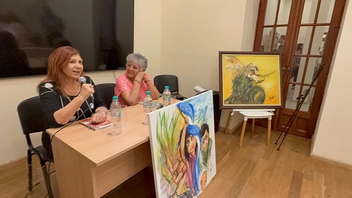 Pujol fue acompañado por la artista plástica Mariela Bellotto, quien expuso dos cuadros relacionados con el poemario de Pujol y con un otro escrito en el que el autor se refiere a los niños de la calle.