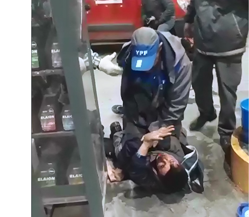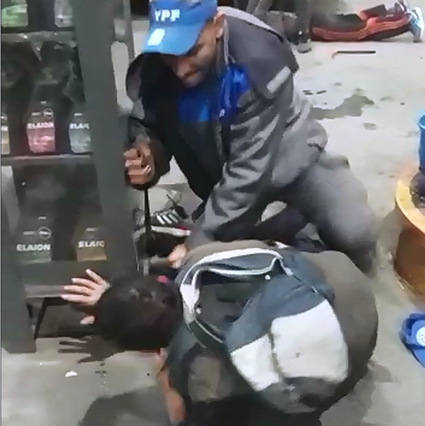 El cómplice del delincuente intentó sacar una 9 mm, pero también fue reducido por compañeros del playero, aunque a éste no lo golpearon tanto.